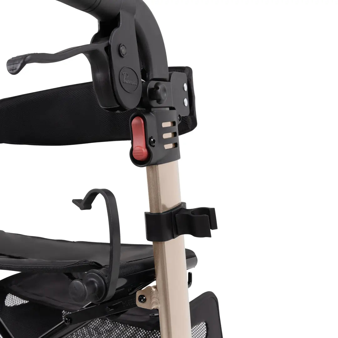 De rollator Luxo van Parvum geeft u veel luxe door het gebruik van fijne materialen en het bieden van de juiste specificaties. De zitting en de rugleuning zijn gemaakt van extra dikke stof zodat u zacht en comfortabel kunt zitten. De wielen zijn uitgerust met softbanden, wat zorgt voor minder trillingen tijdens het lopen. Daardoor zal u het wandelen met de rollator als zeer prettig ervaren. Omdat de Luxo de remkabels in het frame heeft zitten, kunt u met het lopen en optillen van de rollator nergens achter blijft haken. Het unieke aan deze luxe rollator is dat deze dubbel opvouwbaar is waardoor deze zelfs in kleine auto’s makkelijk mee te nemen is. Het maximale gebruikersgewicht is vastgesteld op 120 kg.
