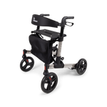 De Rollator Riva is eenvoudig op te vouwen dankzij het dubbele opvouwsysteem. Door aan de lus boven op de zitting te trekken, vouwen de handgrepen naar elkaar toe. Daarna kunt u de handgrepen naar de achterwielen duwen en inklappen. Optioneel bevestigt u het frame met het bijgeleverde klittenbandlusje, waardoor de rollator makkelijker te vervoeren is.